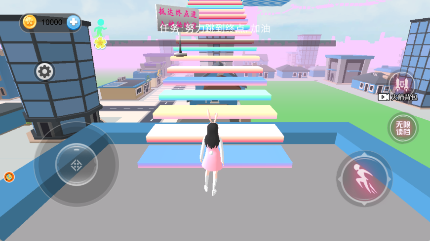 4、目标是在不同樱花校园赛道中顺利完成跑酷,解锁更多服装与赛道,刷新跑酷成绩。