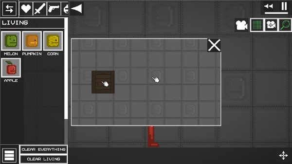 2、进入游戏如图,点击左上角菜单按钮,添加两个物品在地上;