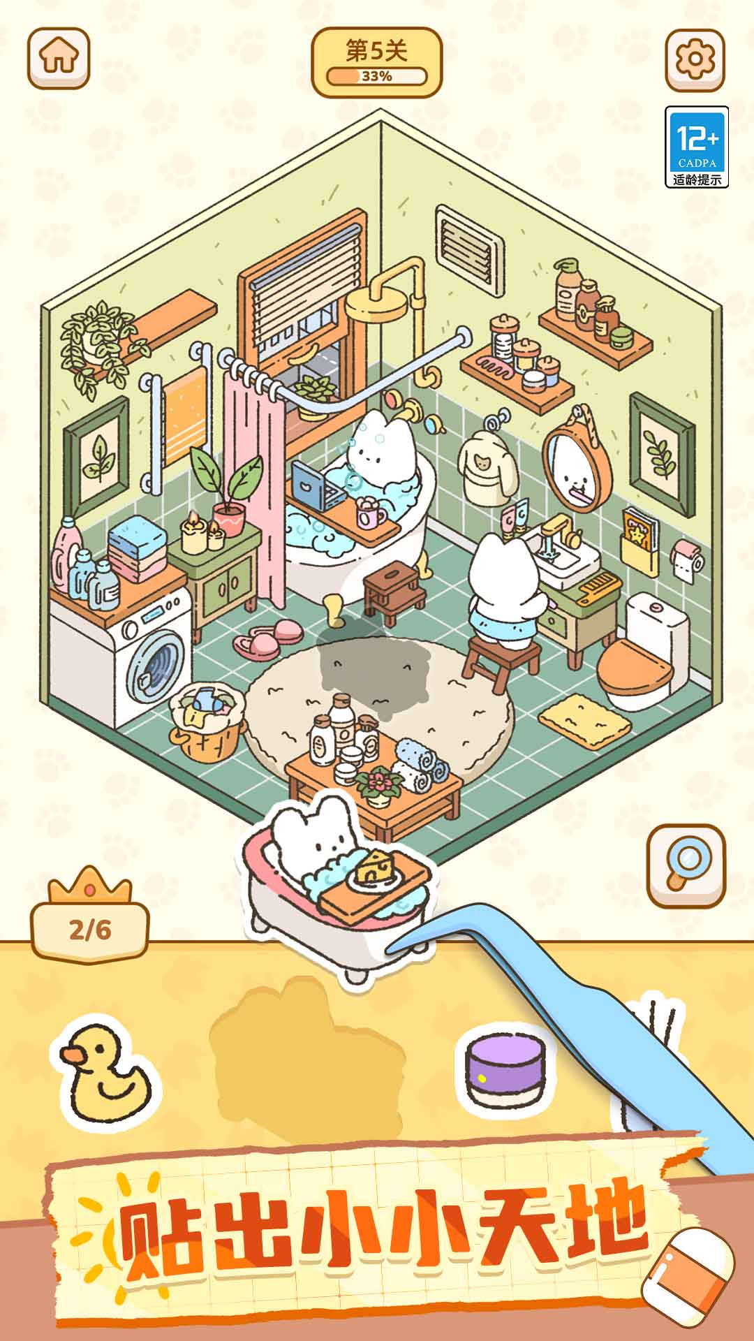 3、成功匹配贴纸触发焕活特效,房间会亮起暖光、播放轻快的音效增强贴对瞬间的成就感与治愈感。